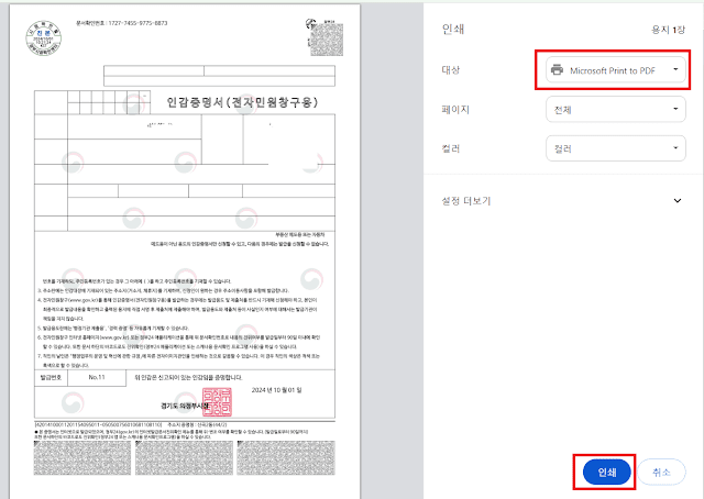 인감증명서는 문서로 출력도 하지만 파일형태로 전달하는 경우가 많습니다. PDF 파일 형태로 인감증명서를 저장하는 방법에 대해 안내드립니다. 또한 인감증명서는 아래 링크를 통해 바로 발급 가능합니다.