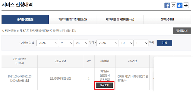 1️⃣ 정부24 페이지에서 인감증명서 발급신청까지 완료합니다.